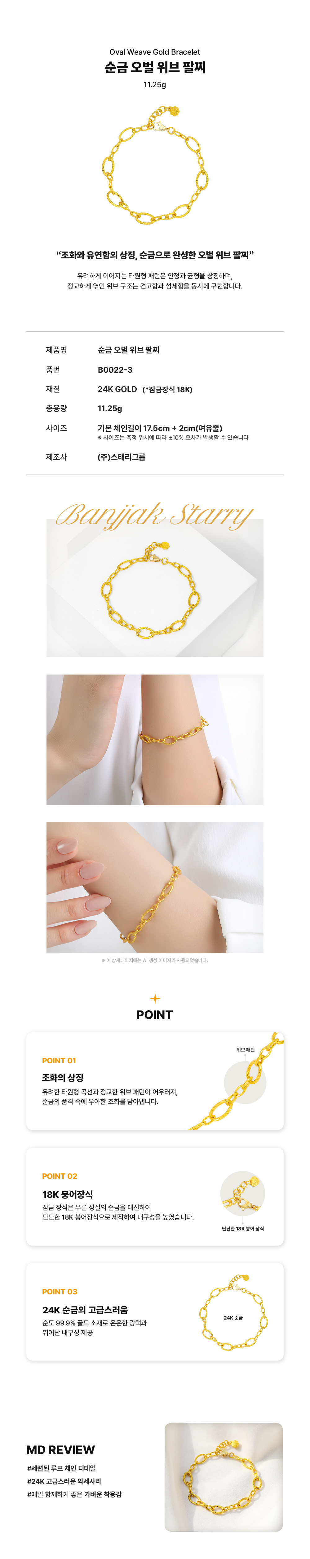순금 오벌 위브 팔찌 11.25g
